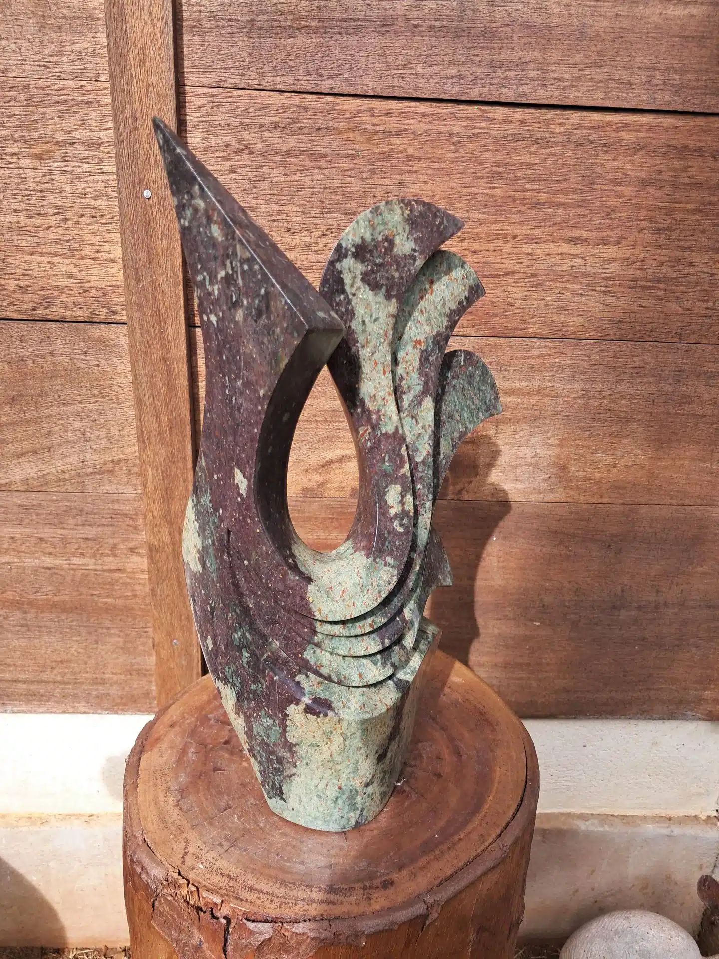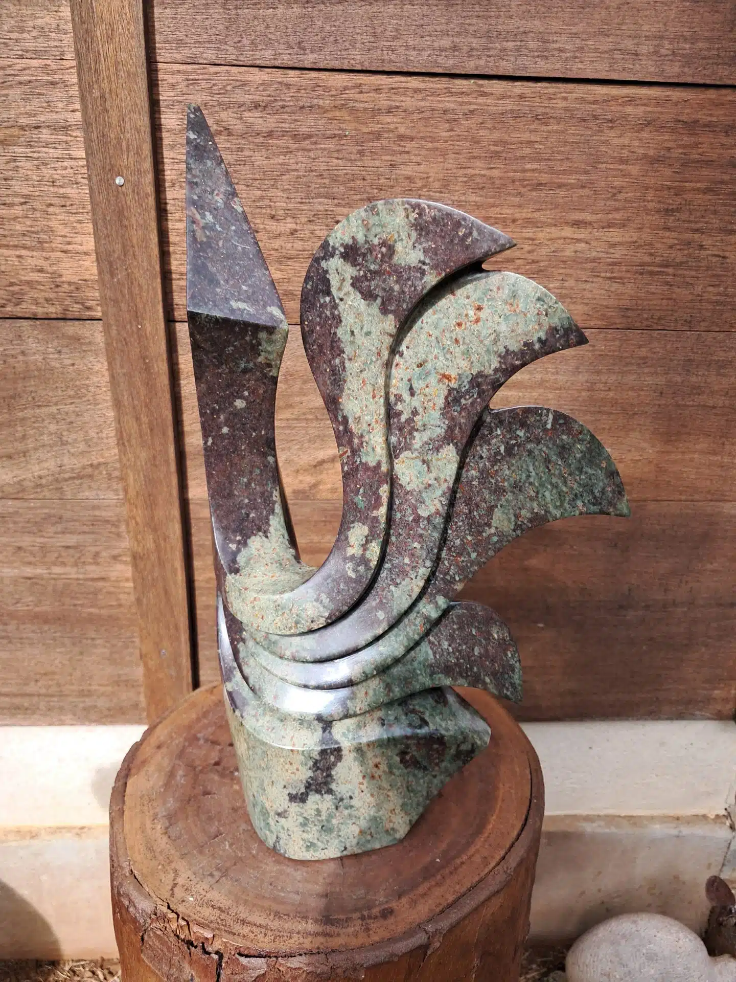 Eclat profond de cette pierre violette et verte, veinée et dure pour cet oiseau stylisé et élégant